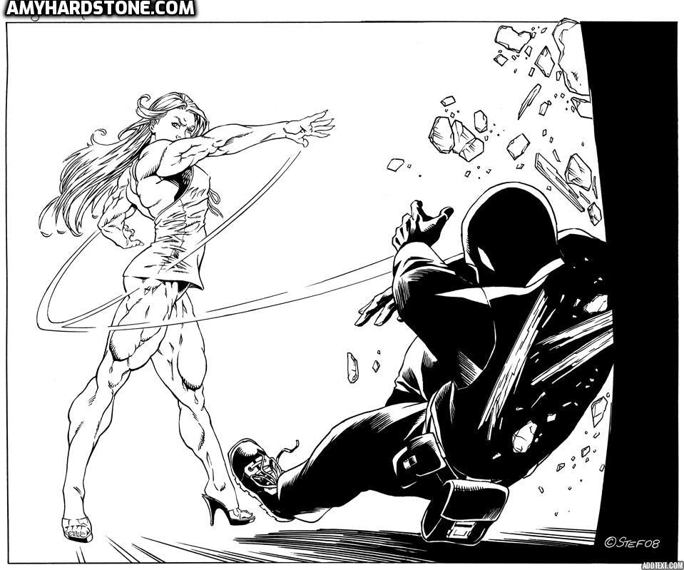Bodybuilder Wendy and her husband Dan's loving 1st anniversary is interrupted by assailants - she protects her husband with her incredible strength! Gorgeous, comic book-style artwork by Stef!