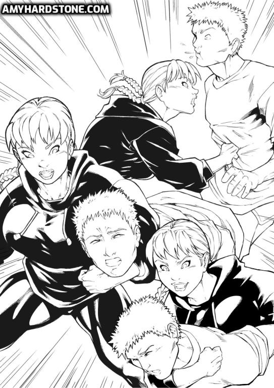 When a college boy notices his younger brother is getting bullied, by a girl no less, he goes next door to confront her; only to have this smaller though extremely athletic girl turn the tables on him, more than once at that. Only with the help of both brothers can they finally contain her, though when her older, bigger, stronger sister gets involved, it's once more the girls that prove to be the dominant sex in this neighborhood! Amazing artwork by London on this AmazonFan story!