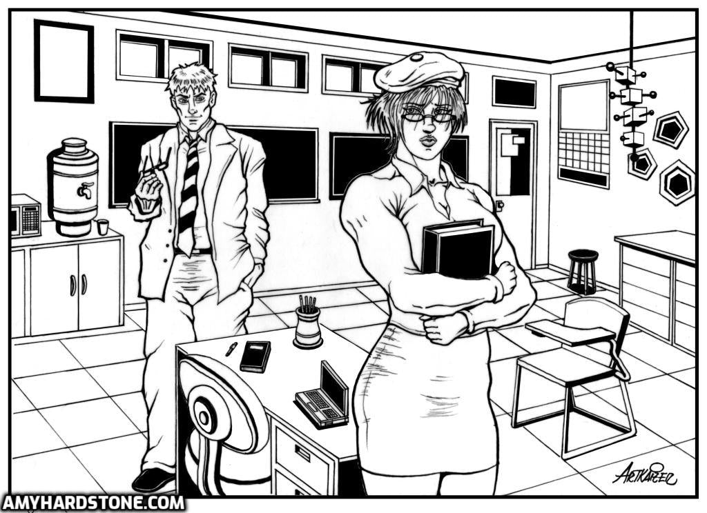 When a shy college art student gets too much unwanted attention from her instructor, he learns the hard way that the luscious curves concealed within her bookwormish attire are Filled with thick, powerful, rock solid muscle! Muscle she uses on him quite viciously there-after, mercilessly paying him back for his years of preying on weak, innocent young girls! - Fantastic artwork by a New AC artist, Artkaizer!