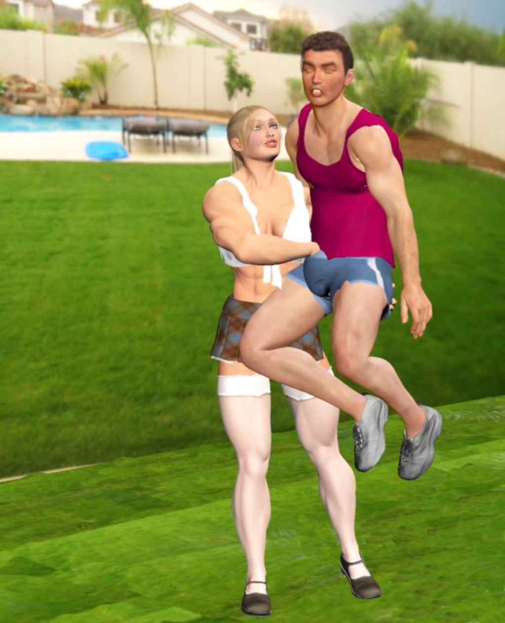 Jack's day goes from being bullied by his muscle packed sister Nikki (and her assortment of beautifully buff friends), to getting heavily aroused by watching video clips of her dominating an online doubter, to being approached by her raven-haired Amazonian BFF who takes him for the Ride Of His Life! - Fantastic CGI pictures from Peter here, in the Final Chapter of the Big Little Sister series!