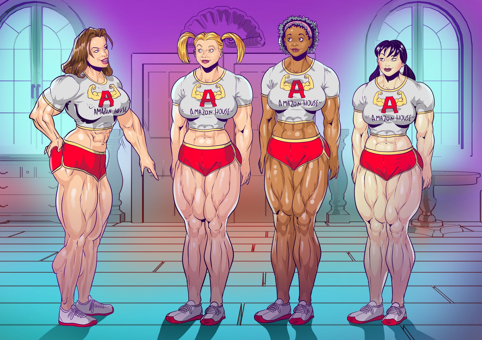 An exotically beautiful Asian Amazon with a compact gymnast's body and steel hard frame, a towering Ebony Goddess with long, lean, powerful muscles flowing all over her statuesque physique, and none other than an increasingly iconic buxom blond bombshell with the unreal beauty to match her unrivaled muscle packed body. Each of them dressed in barely-there string bikinis, which showed off virtually every inch of their super fit frames to those around watching and cheering them on, doing so at a fever pitch as they came to the end of their first initiation task, bringing them one step forward to officially joining this very select Sorority House. Their hard, fit, tight and muscle packed bodies popping, bursting and breaking apart a series of extremely durable foods items, doing so in a race against the clock, to see if they could accomplish their task in their previously discussed time limit. A task that consisted of each of these buff beauties destroying an assortment of watermelons, rock melons, apples, and other hard-skinned produce; doing so with their rock-hard bodies, in very specific ways. The crushing of apples in such muscular girl's flexing arms seemed all too common these days, which is why these girls here had to do so within their thick, pulsating pecs. Shoving the biggest, firmest, hardest looking apples their future Sisters could find into their beefy breasts, and with suddenly savage squeezes crushing them all to pieces, sending rivers of sweet tasting apple juice flowing down their rippling cleavage and into washboard abs.