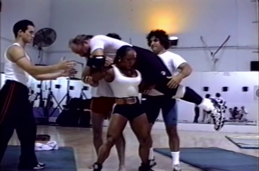 Hoistess Will Seat You: An awe-inspiring package of muscle and power demonstrates the most challenging human lift possible. Yes, the 5 foot tall Dawn lifts her male partners OVERHEAD, military press style! If that's not enough, she does not just do this with one guy, she does it with five guys! And don't think that these are some light pushovers. The gentlemen range in weight from 145 pounds up to 200 plus pounds! Absolutely incredible! For this segment alone, every single lift and carry fan in the world should purchase this tape. I'm not exaggerating when I say that I was left breathless at this stunning display of female athleticism.The segment is long and comprehensive. Dawn is in the gym, and in what looks like nothing more than a strength exhibition, she stands and poses next to a set of five gentlemen. Then, one by one, she lifts them overhead, even doing reps with them! She does all of these lifts unassisted! From the ground until they are hoisted high above her, Dawn lifts men outweighing her by well over 50 pounds. Nothing else can be said about this segment except that you will regret missing out on it if you don't see it. Outside, Dawn shows us why she is one of the strongest women alive, as she takes her love of lifts to even new heights. She carries two guys at a time on her shoulders! She lifts them all with such ease that you have to wonder if she's even human! But human she is, and you will thrill to each and every lift that she accomplishes in what I consider the most ground breaking segment in lift/carry history!