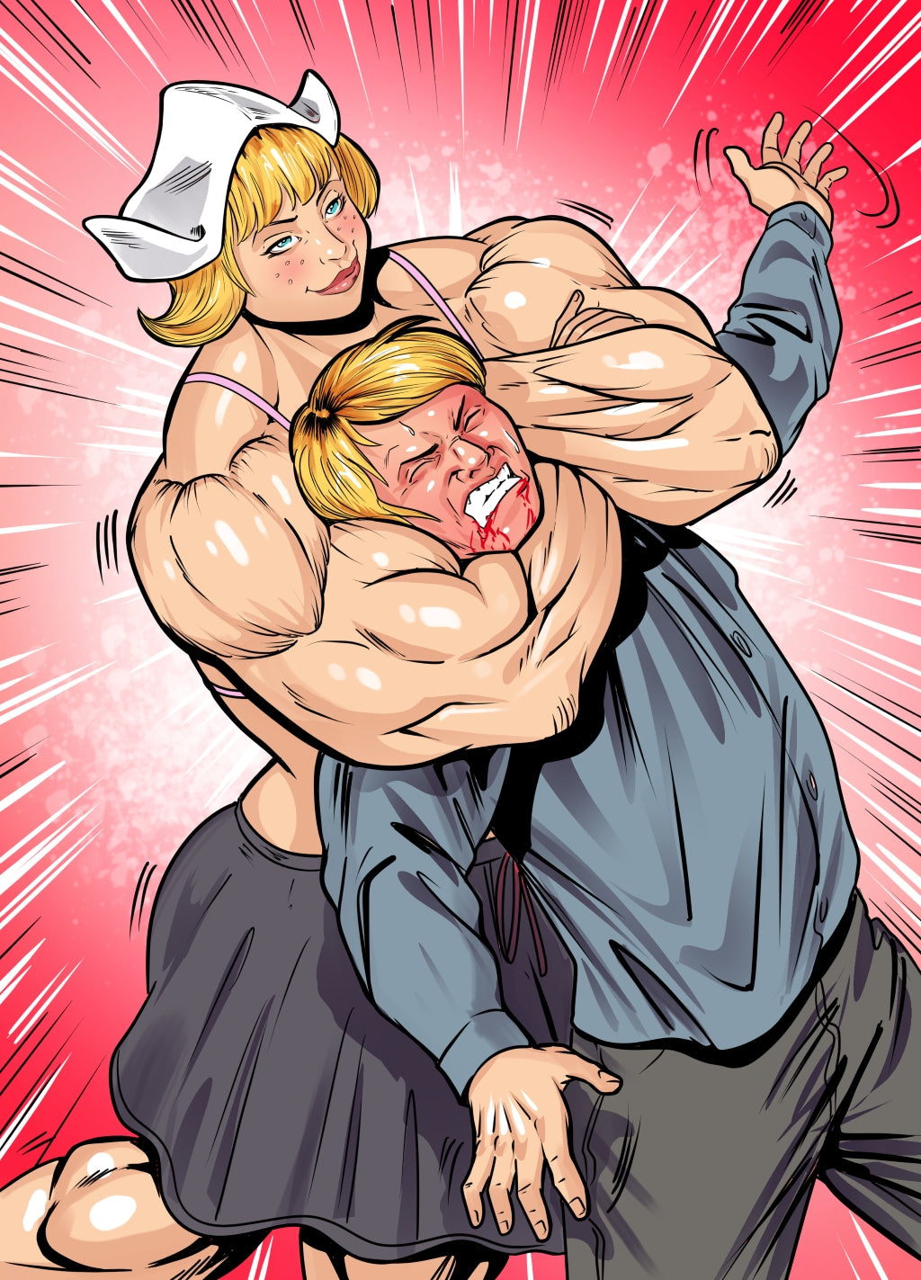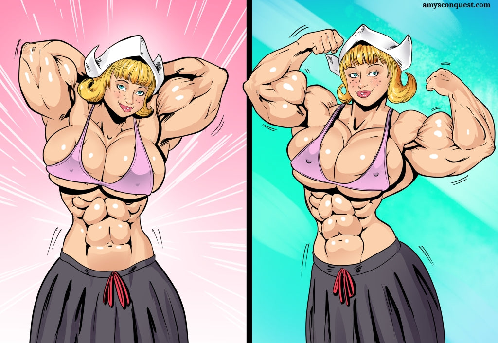 When a traveling vacationer in the gorgeous Holland country-side is in need of assistance due to issues with his rental car, he wanders to a nearby farm seeking help - what he finds is beautiful young farm-girl Ingrid, with strength and muscular size that stuns the young man to his core! What starts out as innocent conversation, quickly turns to flexing of her Massive Muscles and sexual flirtation! This doesn't please the musclebound girl's older brother, who attempts to intervene, though she easily puts him in his place, showing him who's in charge! Such acts of physical dominance serve to arouse her very much, as she continues to show off her unreal strength and power on both young men before her, much to her own erotically charged delights! Legendary artist Jupiter I illustrates this Michele LeMuscle classic!