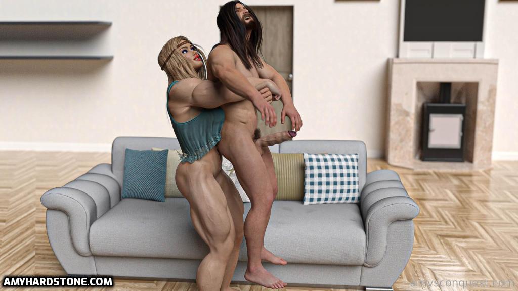 It's Jessica's birthday! And there's a nice surprise waiting for her - but maybe not so nice for Matty, her boyfriend. His weak body is no match for her powerful muscles, her crushing vagina or her smothering breasts. Jessica's friend Amy accompanied her to the Rose and Thorn, where they get into a fight with a bunch of bikers.