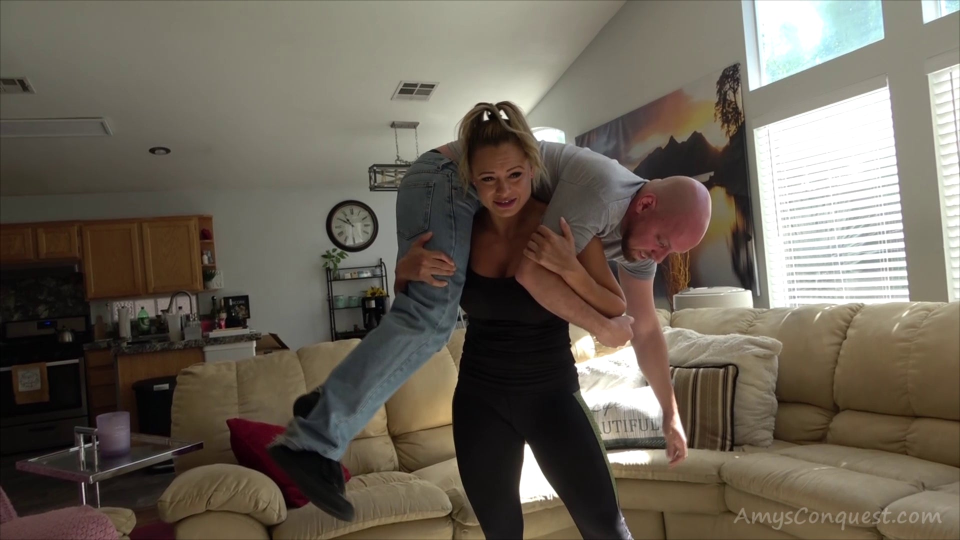 When Gym Expert Lilly enters the home of a man, asking him to sign a petition to allow a women's only gym (specializing in top female physiques) to be set up nearby, he chauvinistically replies with a No, stating that he's not into women being stronger than men. Fitness fanatic Lilly isn't one to take such a negative reply lightly, and proceeds to use her buff body to show him the "benefits" of having such physically powerful women in his area, and even in his own life! After a series of crushing squeezes, mangling limbs and body lifts, the once uncooperative male is quickly convinced that being the weaker sex isn't as far off a notion as he originally thought, and there isn't anything he can do to stop more strong, sexy girls popping up around him in the future!