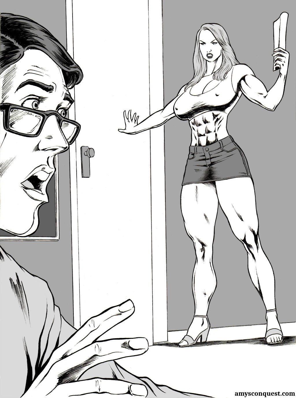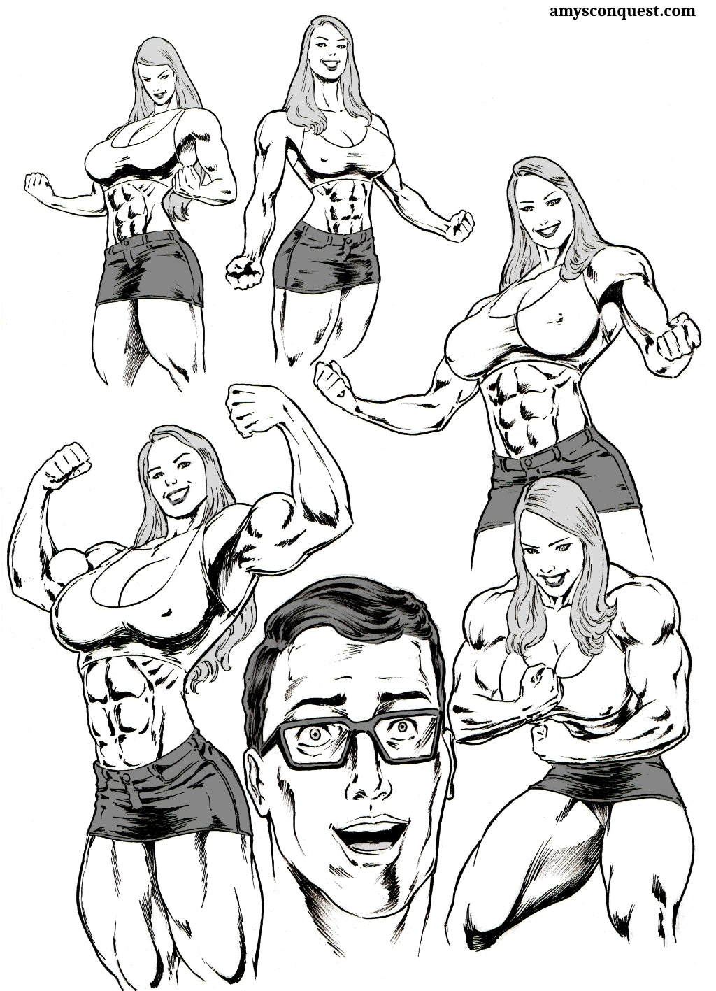 Missy is a gorgeous and popular young college girl, who doesn't take kindly to the unsatisfactory grade that one of her professors has just given her. So she pays him a visit in his office, using a perfect combination of girlish sexuality and amazing physical power (not to mention the expanse of her fit form into a muscular Amazon) to get herself both a top grade, and also this professor as well! Incredible drawings by Max on this The Collector tale!