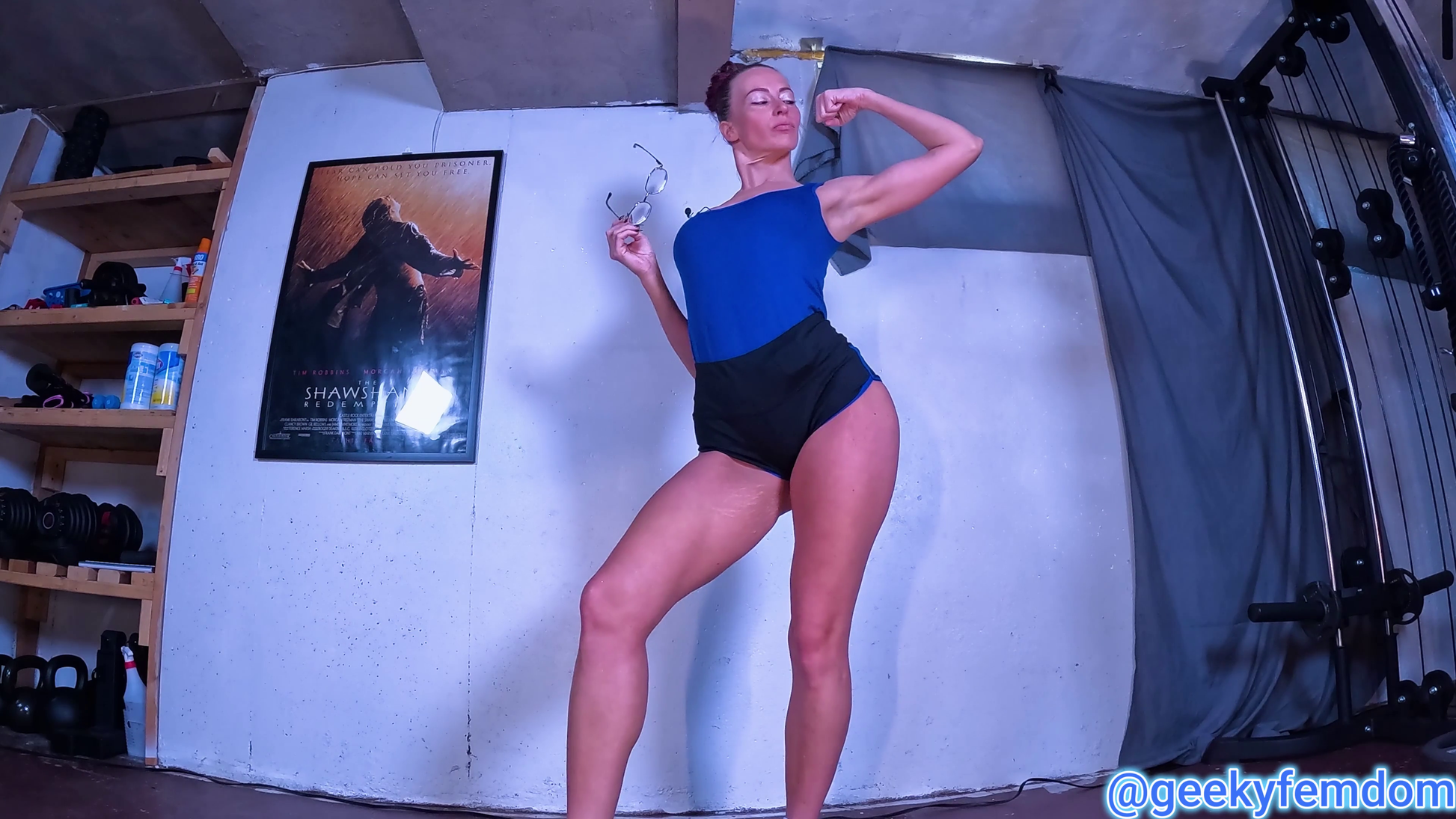 Your muscular roommate is tired. You're constantly sitting around gooning to internet porn. Your leaving cum stains sheets and towels all over the place. You leave it for her to clean up your dirty sheets. That ends today. You're going to be punished. If you're going to goon, then you going to goon in front of her. Your going to fap to her muscles, her tits, her feet. You're going to worship your muscle goddess. She lays down a cum blanket for you, and you will spill every drop you have into it.