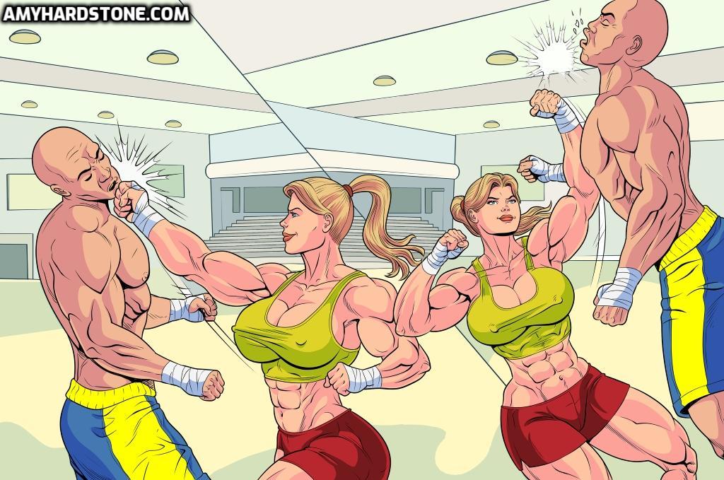 When a young man starts his college years, he quickly befriends a powerful, thickly muscled girl named Sara, who luckily for him lives just down the hall. His lust for such physically superior females comes to fruition, as the sultry Supergirl lures him in with feats of strength, which quickly turn into erotic, muscle love-making between them! Sara continues showing off her strength in public, which always gets her man hot and bothered! Whether she overpowers the school's jocks in arm-wrestling, or batters about a large, muscular man in the gym, all of which ends with passionate sexual sessions, where she shows her physical superiority over her now boyfriend! An awesome story, with artwork by Tom and Diego here