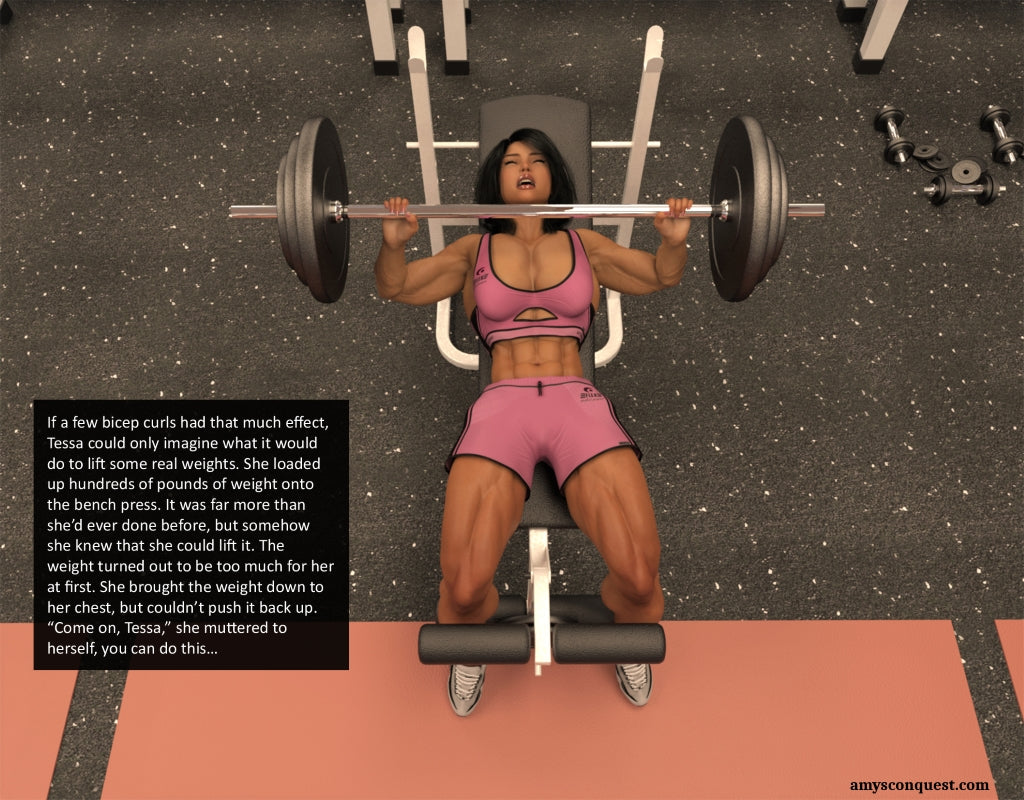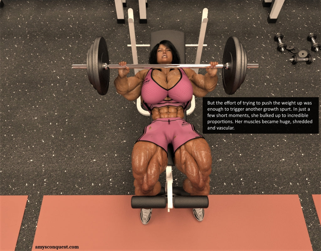 Our story continues as Dan's forcibly ex-girlfriend Tessa pleads with her chemistry professor to help her even the odds against the Amazingly Amazonian Brigette! This leads to a muscle growth serum, which she is instructed to take gradually, though Tessa wants her man back Now, so she takes the entire amount, which allows her to grow to Gigantic proportions and Unreal strength! Tessa then confronts Brigette (who Dan has gotten very close to), demanding the return of her man, causing the Two Towering Titanesses to tussle; their power evenly matched, each seemingly unable to hurt the other - though Dan on the other hand isn't so lucky! More Incredible illustrations and text by the Awesome Mr. Lex here