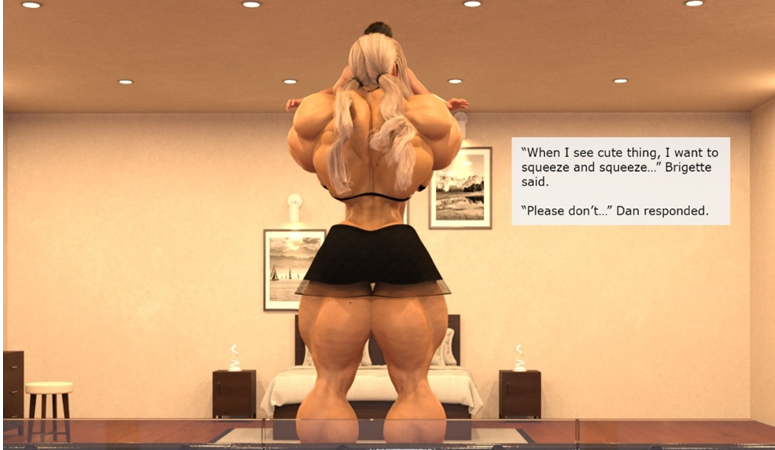 Bridgette continue to have her way with her new boy toy. She shows her gigantic power, tossing him around and using him as a toy.