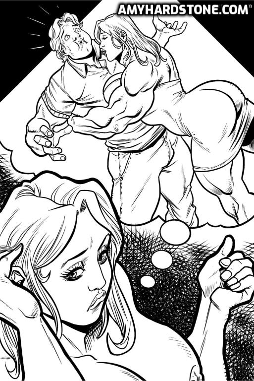 Howard just can't get enough of Stephanie's super sexy, super muscular body, and she can't get enough of his adoration of her Amazonian form! Too often had her muscles intimidated or scared previous dates away, though this time she has found a lover that lusts after her ultra fit frame, which she takes full advantage of, much to his delight! Their first date is clearly one of many more to come, to say the least! Fantastic drawings by Rafael on the conclusion of this Wanderer story