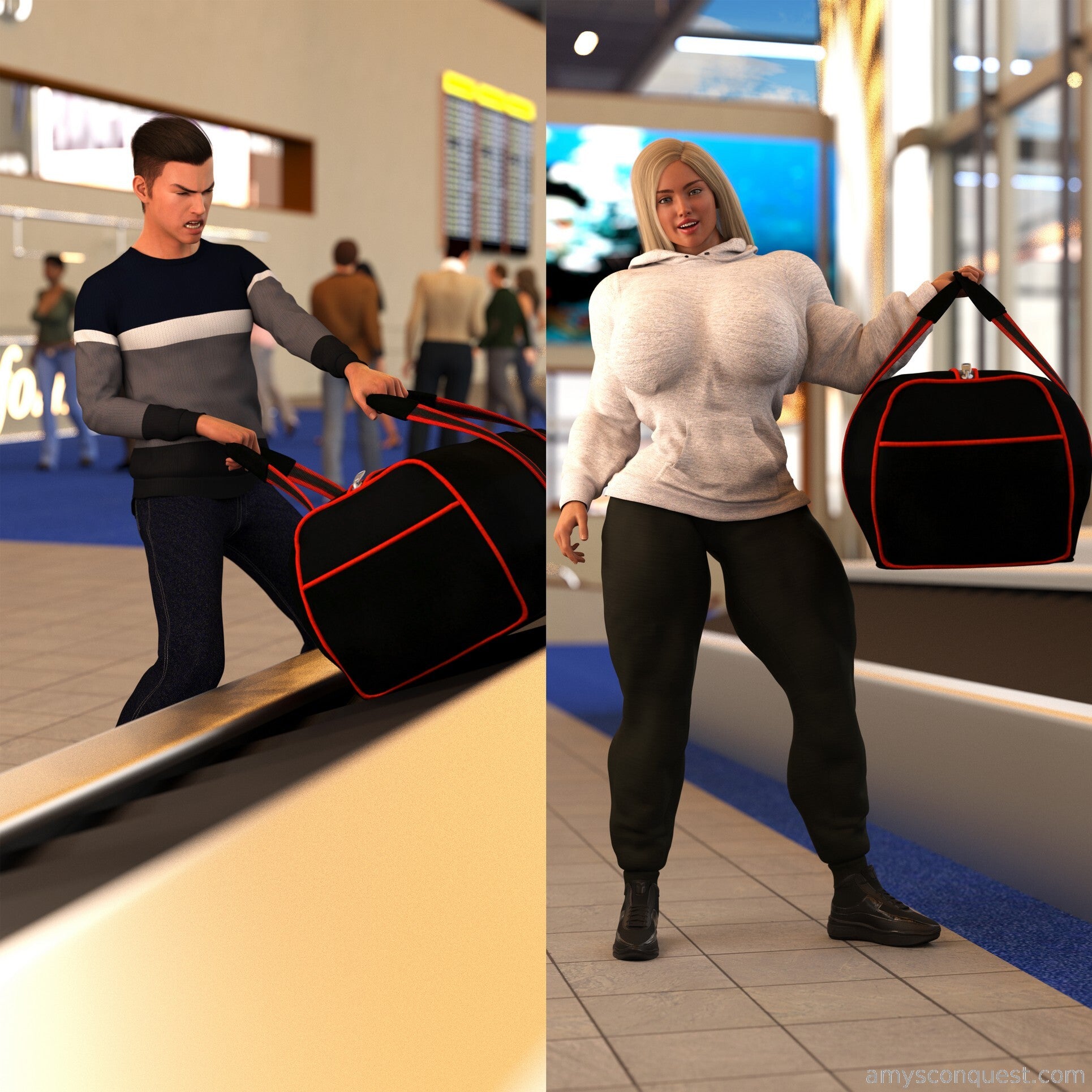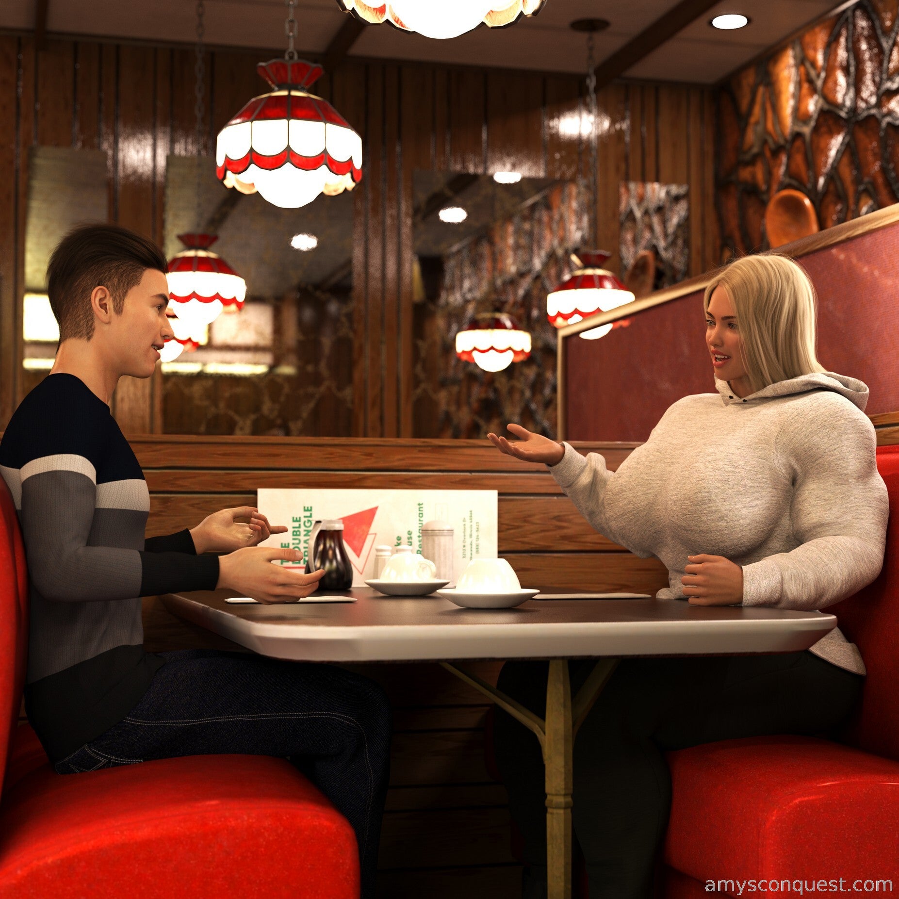 Elaine has a problem - she's too big. Not fat, but big. Her ambition is to join the college football team. Not a "girls team", but THE team. That's how she meets Jeremy, who is much too small for the team, and both of their lives are changed. They both fall in love. Her first date with him went very well, but for her second date, she needs a really posh dress, which she doesn't have. And she can't buy one, because she's ... too big. She visits a dressmaker who takes her remarkable measurements, and gets a quote for $600. She raises the cash by challenging, and defeating, one of the football team, at wrestling. So she can pay for new new dress, and the second date with Jeremy goes well, and ends with a powerful display of what it's like for Jeremy to have sex with a girl who is ten times as strong as he is.