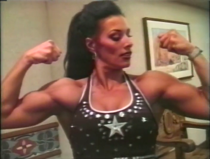 we get to see a couple of pretty bodybuilders strut their stuff. First, Mary-Ann shows us just how powerful her muscular 155 pound physique really is. She carries a guy with such ease that you've got to wonder if this is even for real! But fear not my friends, because with the wonderful camera work from Builtmore, we get to see these lifts from every possible angle, and there are no camera tricks, just pure athletic prowess in action! Mary-Ann is able to carry the guy in her arms and squat him repeatedly. That doesn't seem hard enough, so the guy decides to climb onto her shoulders, where he sits proudly as she squats him and walks around with him.Watch as she gives him a front-piggyback ride with such ease that she doesn't even have to use her arms to hold him! That is pretty impressive, and it is followed up with another great feat. Mary-Ann picks the guy up like a ballet lift, in which she lifts him by his hips, high into the air. Talk about your role reversal! How she does that boggles the mind, but wait until you see what happens next.One of the most beautiful girls ever to grace the bodybuilding world, Theresa Anachierco, a tiny bundle of energy, She is absolutely gorgeous, and she picks up this guy who weighs substantially more than her a hundred different ways! She even manages to do the ballet lift several times. Your heart will melt when you catch Theresa's facial expressions while she squats the guy on her back. Her provocative stares are the ultimate turn-on Theresa Anachierco, a tiny bundle of energy goes toe to toe with Mary-Ann and matches her lift for lift! At the end of the segment the two girls "play" with the guy, passing him between each others' arms. Oh, and wait until you see Mary-Ann pick up both Theresa and the guy at the same time! Remember Christine? There's no way you could forget. Well she's back for her second segment. Here, she puts her strength to the ultimate test as she does great lifts and holds the guy up for along time in many of them.Watch Christine throws him over her shoulder and flexes her beautifully rounded biceps. She really makes it look easy, and I just can't get enough of the cradle carries...oh, and the piggybacks...oh, and the...well you get the idea.Carolina, attractive muscular model and bodybuilder from charleston ,lifting guys and girls.Hold on to your hats, because here comes Deidre! That's right, Deidre Pagnanelli, the dark haired goddess shows us why she is without a doubt one of the most popular and famous fitness models in the world. She is sexy beyond belief as she poses and she does an erotic bicep flexing seen where she'll leave you drooling! While wearing a glamorous, sequined dress, she carries this guy around the room in her arms with a beautiful smile across her face. I can't describe the feeling of seeing her carry that guy effortlessly while in a dress and high heeled shoes.Deidre Pagnanelli at the end of the segment, she does a cheerleading routine which will leave you breathless. Pretty amazing how much energy that girl has. Youch!Last segment with a very strong girl who lifts a guy many ways, while walking around a room with him for what seems like an eternity! The way it looks, she could carry him all day.
